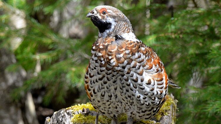 Чернобыльский заповедник показал фото откормленного пестрого рябчика на пне зоны отчуждения