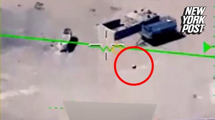 Видеозапись была сделана американским военным беспилотником. На ней можно заметить быстро летящий сферический объект.