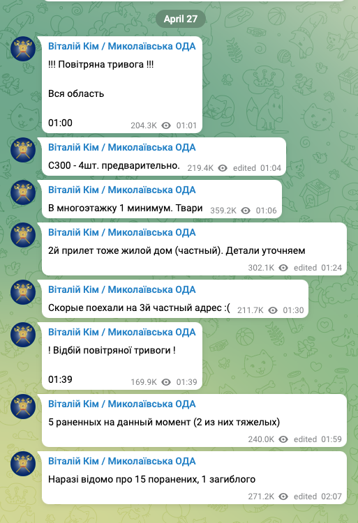 Предварительно губернатор Виталий Ким сообщал о пуске четырех ракет С-300 и прилете в одну многоэтажку и два частных дома.