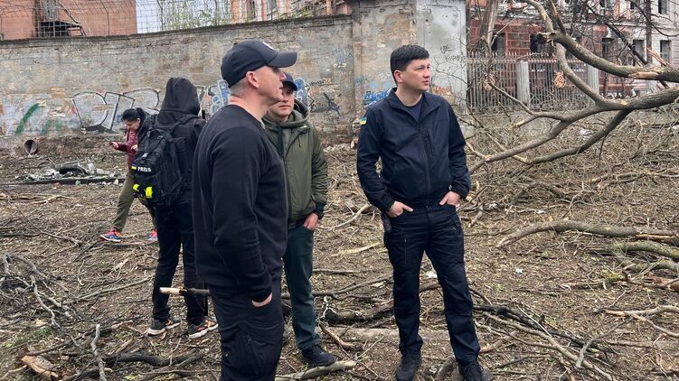Глава Николаевской области Виталий Ким работает на месте обстрела. Фото: телеграм-канал