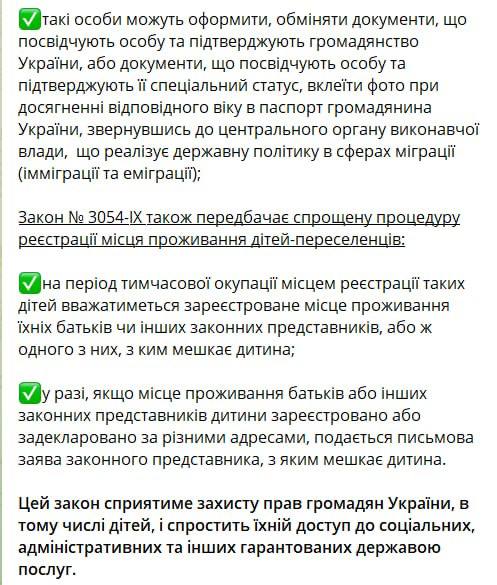 Закон предусматривает упрощенную процедуру регистрации места жительства детей-переселенцев: