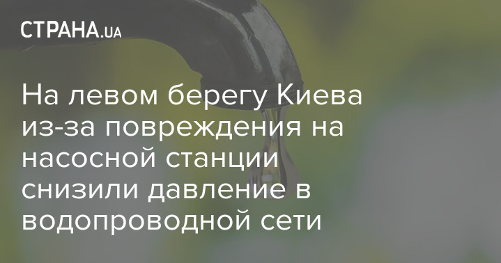 На левом берегу Киева снижено давление в водопроводной сети из-за повреждения электрического оборудования на насосной станции.