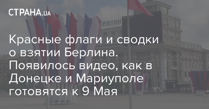 На центральной площади Донецка развешены красные флаги. По Мариуполю ездит машина с красным флагом, которая транслирует песни военных лет и сводку от Совинформбюро о взятии Берлина в 1945 году.