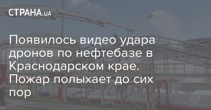 Появилось видео удара дронов по нефтебазе в Краснодарском крае. Пожар полыхает до сих пор