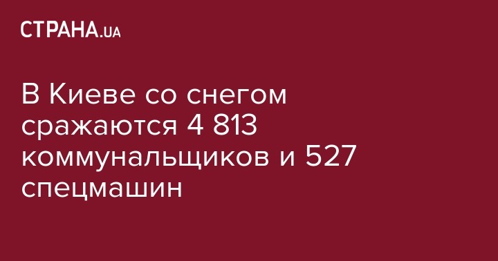 "По состоянию на 07.00 2 декабря, для уборки снега и льда с дорог, улиц и тротуаров Киева всего задействовано 527 единиц техники и 4813 человек", - говорится в сообщении.