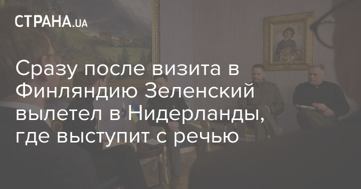 Сразу после визита в Финляндию Зеленский вылетел в Нидерланды, где выступит с речью