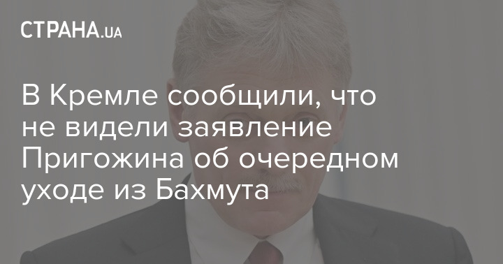 Пресс-секретарь Путина Дмитрий Песков заявил, что в Кремле не видели вчерашнее заявление куратора ЧВК "Вагнер" Пригожина, в котором тот вновь пригрозил покинуть Бахмут.