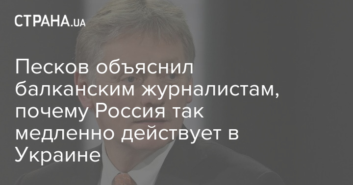 Пресс-секретарь Кремля Дмитрий Песков заявил, что Россия медленно действует в Украине, поскольку ведет "СВО", а не войну.