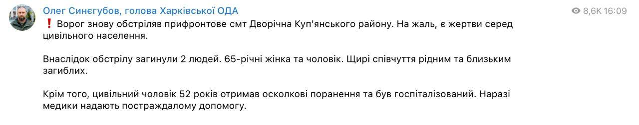 21.22 Сообщают об обстреле Купянска Харьковской области.