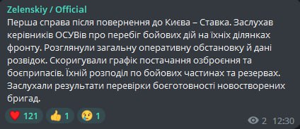 1. Заслушал руководителей Объединенной стратегической группировки о ходе боевых действий на их участках фронта;