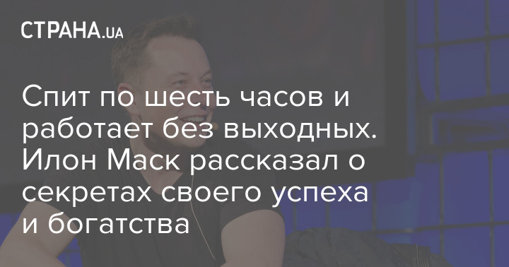 Американский миллиардер, основатель компании SpaceX и Tesla Илон Маск, который недавно потерял статус богатейшего человека на планете по версии Forbes, поделился секретом богатства. По его словам, он спит лишь шесть часов в сутки (пробовал меньше, но теряет эффективность и чувствует головную боль), работает семь дней в неделю, а бездельничает только два-три дня в году.