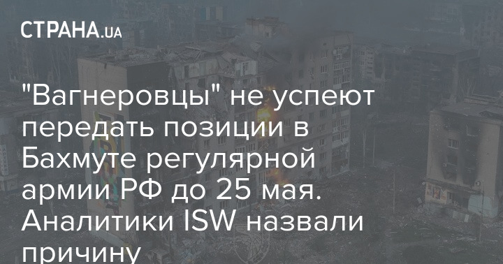 ЧВК "Вагнер" не успеет передать свои позиции регулярной армии РФ в Бахмуте до 25 мая - дня, когда, по заявлению Евгения Пригожина, "вагнеровцы" должны уйти из города.
