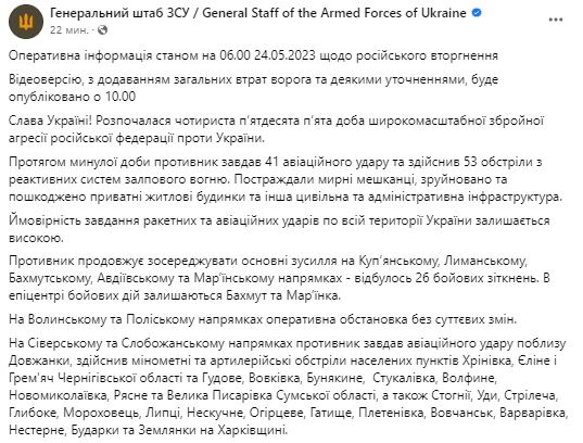 Война в Украине идет уже 455-й день. Мы следим за новостями 24 мая в своем онлайне.