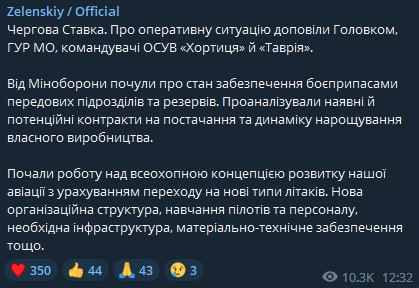 Зеленский провел заседание Ставки. Обсудили концепцию развития авиации и переход на новые типы самолетов