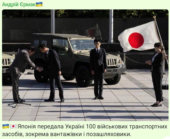 Япония передала Украине 100 военных транспортных средств, в том числе грузовики и внедорожники.
