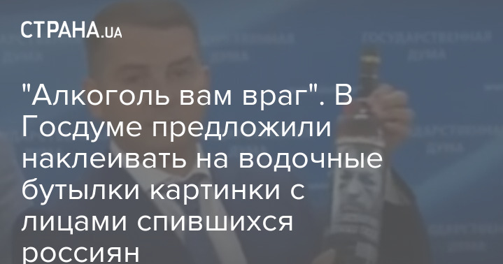 Депутаты Госдумы России предложили наклеивать на бутылки водки лица спившихся россиян. Кроме того, на спиртном парламентарии предлагают разместить надпись "Алкоголь вам враг".