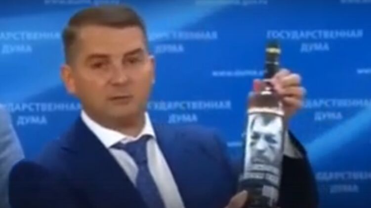"Если наш законопроект будет поддержан, то вот такая водка и будет продаваться. На бутылке написано: "Алкоголь вам враг". Не красивые бутылки, а изображения спившихся граждан", - заявил депутат.