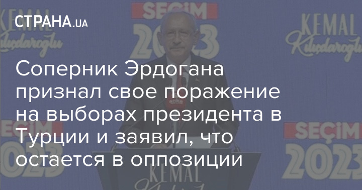 Соперник Реджепа Тайипа Эрдогана Кемаль Кылычдароглу в своем первом выступлении после второго тура выборов президента фактически признал свое поражение и заявил, что продолжит оппозиционную деятельность.