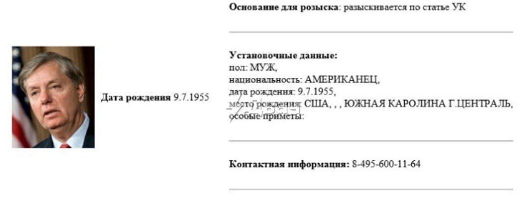 МВД России объявило в розыск американского сенатора Линдси Грэма. Ранее глава Следственного комитета Александр Бастрыкин поручил открыть против политика уголовное дело - после его заявлений в Киеве.