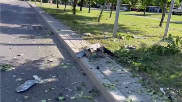 В сети появилось видео с места падения беспилотника в Белгороде на проезжую часть. Соответствующие кадры опубликовал мэр города Валентин Демидов.