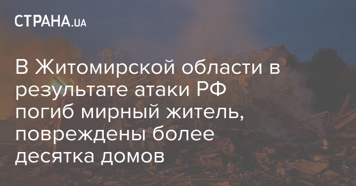 В Житомирской области в результате атаки РФ погиб мирный житель, повреждены более десятка домов