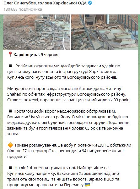 Харьковскую область ночью 9 июня массировано атаковали "Шахедами".