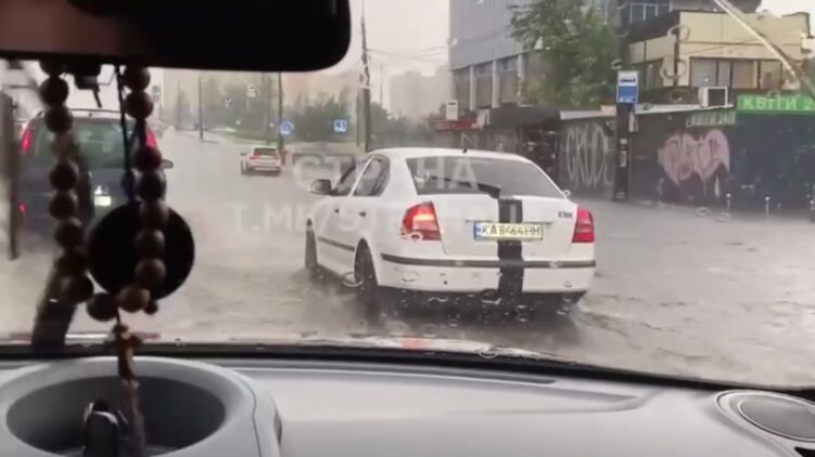 Также появились видео затопления и других столичных улиц. При этом отмечается, что на Борщаговке дождя вообще не было.