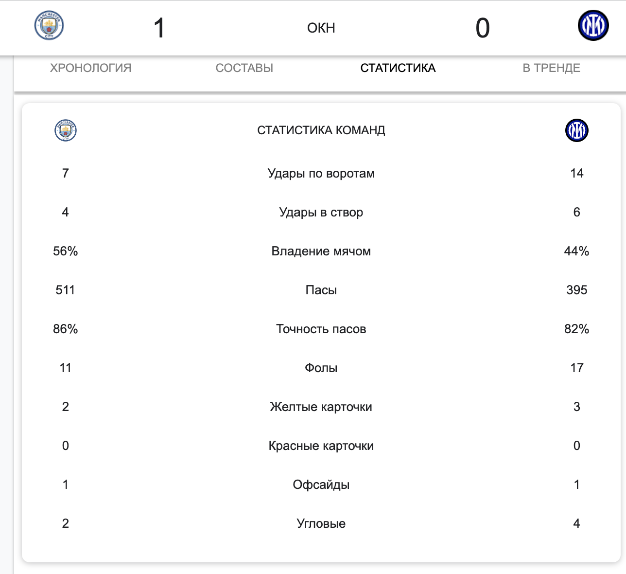 Единственный гол в матче на 68-ой минуте забил опорный полузащитник Родри. Испанец технично пробил на добивании с 11 метров.