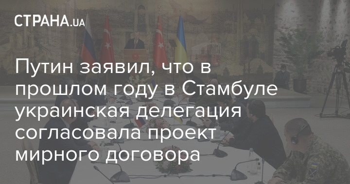 Президент РФ Владимир Путин заявил, что во время переговоров в Стамбуле в марте прошлого года украинская делегация парафировала (то есть предварительно подписала) проект мирного договора, который должен был быть подписан с Россией.