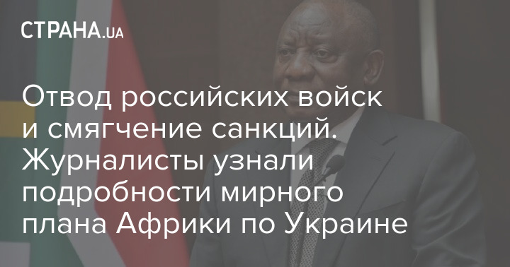 Частью африканского мирного плана, который изначально предполагал переговоры без вывода войск РФ с территории Украины, станет предложение к России отвести войска в обмен на ослабление санкций.