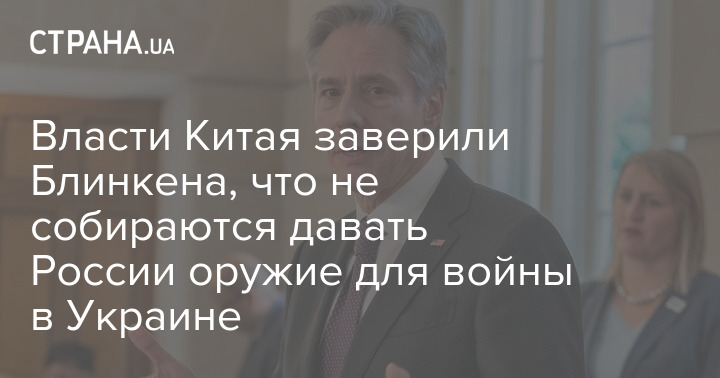 Госсекретарь США Энтони Блинкен заявил, что в ходе визита в Пекин китайские власти заверили его, что не собираются поставлять России оружие для войны в Украине.