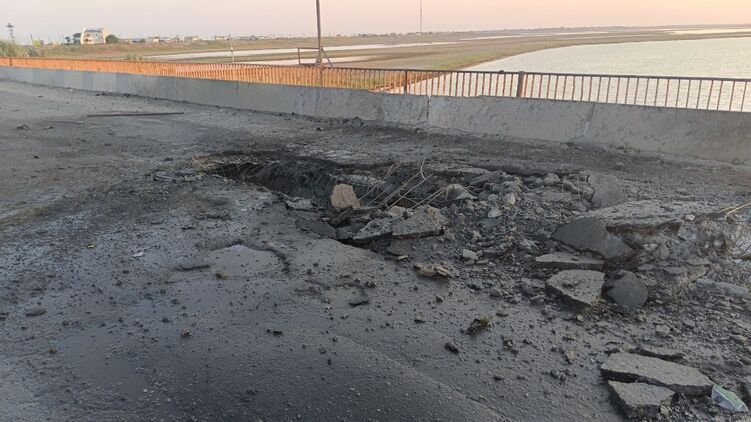Также назначенные Россией "власти Херсонской области" показали видео с одного из поврежденных мостов. На нем видна пробоина в дорожном покрытии.