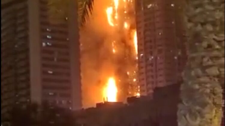 На севере ОАЭ горел 36-этажный небоскреб. Фото: скриншот с видео