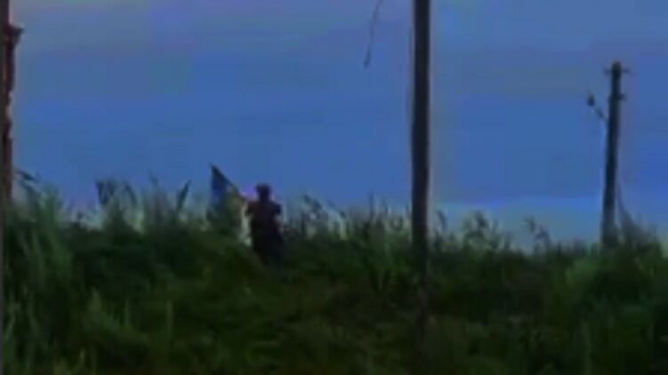 Украинский флаг над Курдюмовской балкой. Скриншот видео