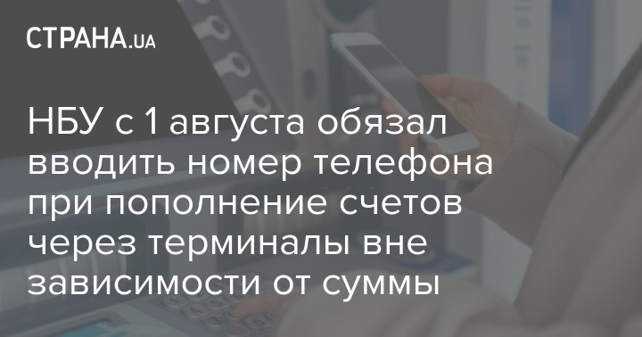 НБУ с 1 августа обязал вводить номер телефона при пополнение счетов через терминалы вне зависимости от суммы