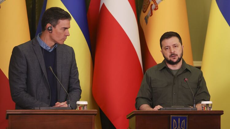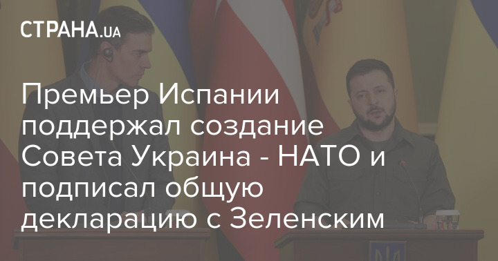 Президент Украины Владимир Зеленский и премьер-министр Испании Педро Санчес приняли общую декларацию, где затронули вопрос НАТО. Документ был подписан во время визита Санчеса в Киев.