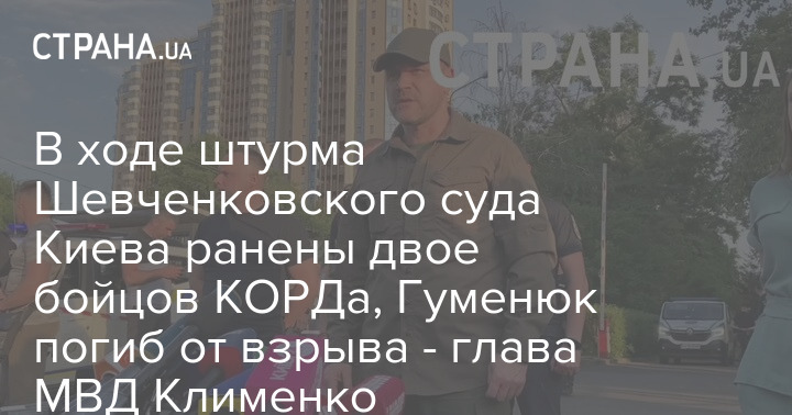 "Гуменюк попросился в туалет, где закрылся, спустя какое-то время Гуменюк открыл двери и бросил взрывное устройство. После этого Гуменюк попытался сбежать, но был остановлен предупредительным выстрелом в воздух, который совершил начальник караула. После этого Гуменюк забаррикадировался в комнате конвоиров, откуда бросил второе взрывное устройство. После начала штурма, Гуменюк третий раз бросил взрывное устройство, от взрыва которого сотрудники КОРДа получили ранение, а сам Гуменюк погиб", - заявил Клименко.