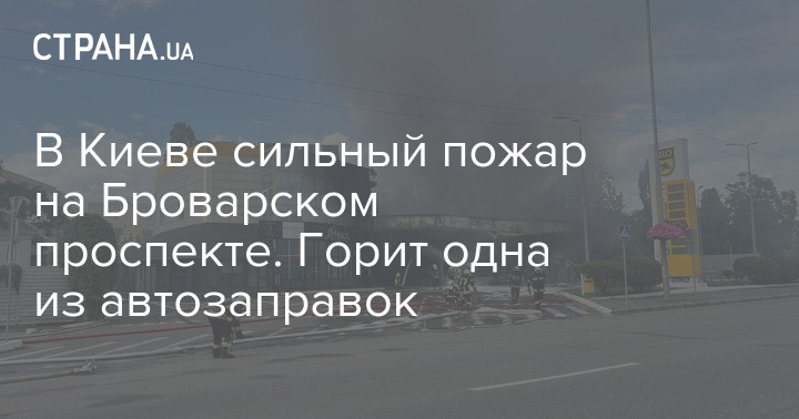 В Киеве сильный пожар на Броварском проспекте. Горит одна из автозаправок