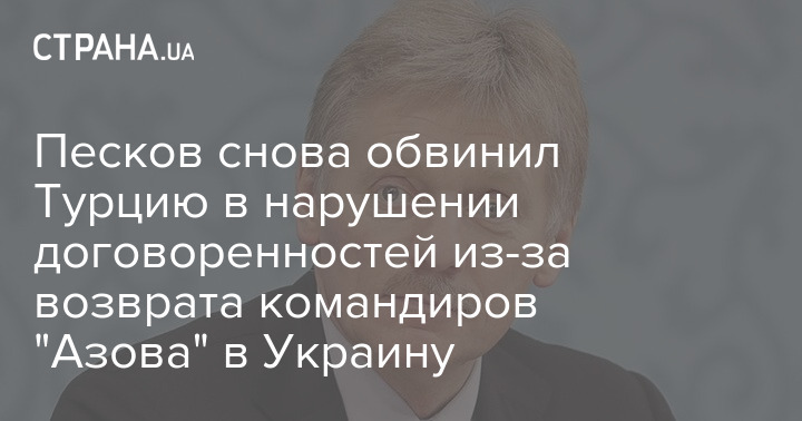 Пресс-секретарь президента РФ Дмитрий Песков снова обвинил Турцию в нарушении договоренностей при возврате командиров "Азова" в Украину.
