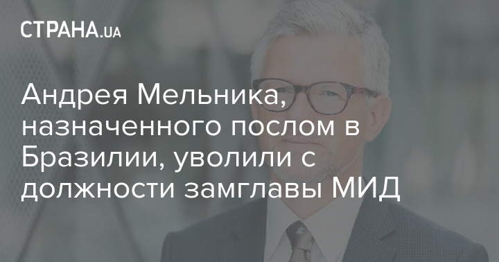 Украинского дипломата Андрея Мельника, который назначен послом в Бразилии, уволили с должности заместителя министра иностранных дел Украины.