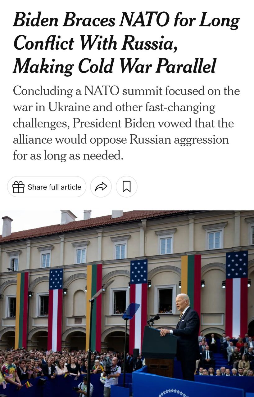 Президент США Джо Байден готовит НАТО к длительному конфликту с Россией, проводя параллель с холодной войной.