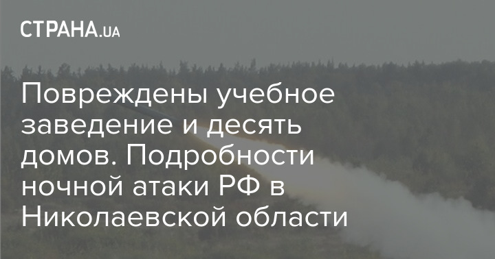 В Николаевской области минувшей ночью обломками сбитого "Калибра" повреждены здание учебного заведения и десять частных домов.
