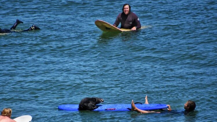 Калифорнийская выдра попала в заголовки американских газет из-за своего захватнического поведения относительно сёрфингистов, у которых она отбирала доски, чтобы покачаться на волнах.