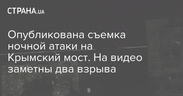 Опубликована съемка ночной атаки на Крымский мост. На видео заметны два взрыва