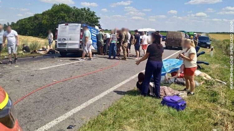 "ДТП случилось в 14:00 на 47-м километре трассы Кропивницкий - Кривой Рог, неподалеку от села Куцовка. Водитель Александр Ведмедь, который управлял микроавтобусом Opel Vivaro, выехал на полосу встречного движения, где столкнулся с другим микроавтобусом Volkswagen Crafter под управлением Евгения Гакуна. Вследствие ДТП погибли трое пассажиров микроавтобуса Volkswagen Crafter: двое мужчин скончались на месте ДТП и одна женщина умерла в машине скорой помощи по дороге в больницу. Травмы получили 16 человек, 11 из которых госпитализированы. Водитель микроавтобуса Opel Vivaro Александр Медведь, который стал виновником ДТП, задержан, ему грозит до 10 лет лишения свободы", - рассказал источник "Страны" в правоохранительных органах.