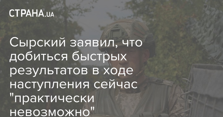 Командующий Сухопутными войсками Александр Сырский заявил, что добиться быстрых результатов в ходе наступления сейчас "практически невозможно".