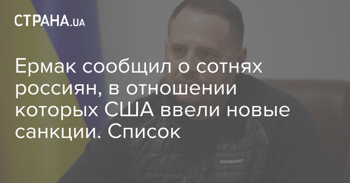 Ермак сообщил о сотнях россиян, в отношении которых США ввели новые санкции. Список