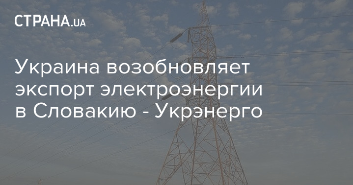 "Укрэнерго" возобновляет возможность экспорта электроэнергии в Словакию. Первый аукцион по доступу к экспорту стартует 21 июля с 200 МВт доступной мощности.