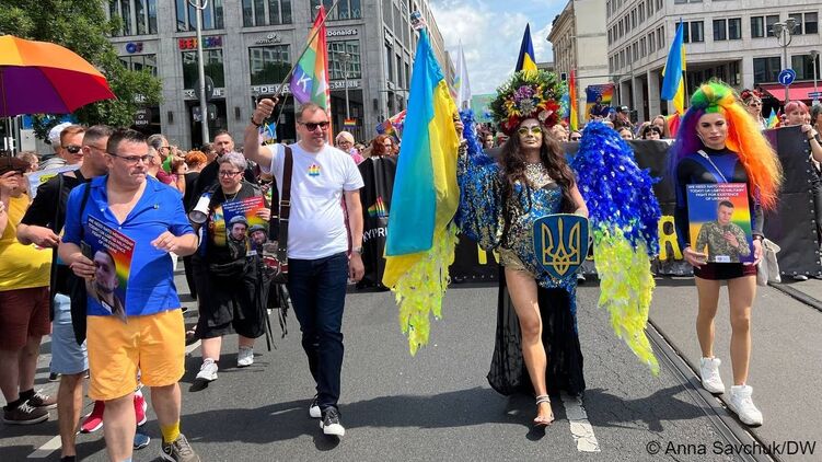 Украинская колонна прошла по улицам Берлина под девизом "Будь горд, как Украина" ("Be Pride Like Ukraine"). Люди шли с флагами Украины и ЛГБТ-движения, в национальных костюмах, выкрикивая лозунги: "Война не окончена", "Слава Украине".