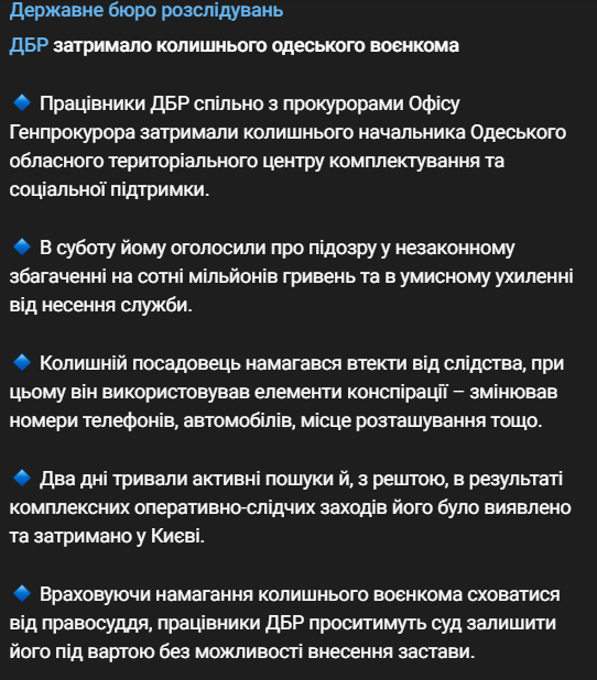 Также ГБР публикует видео задержания бывшего военкома.